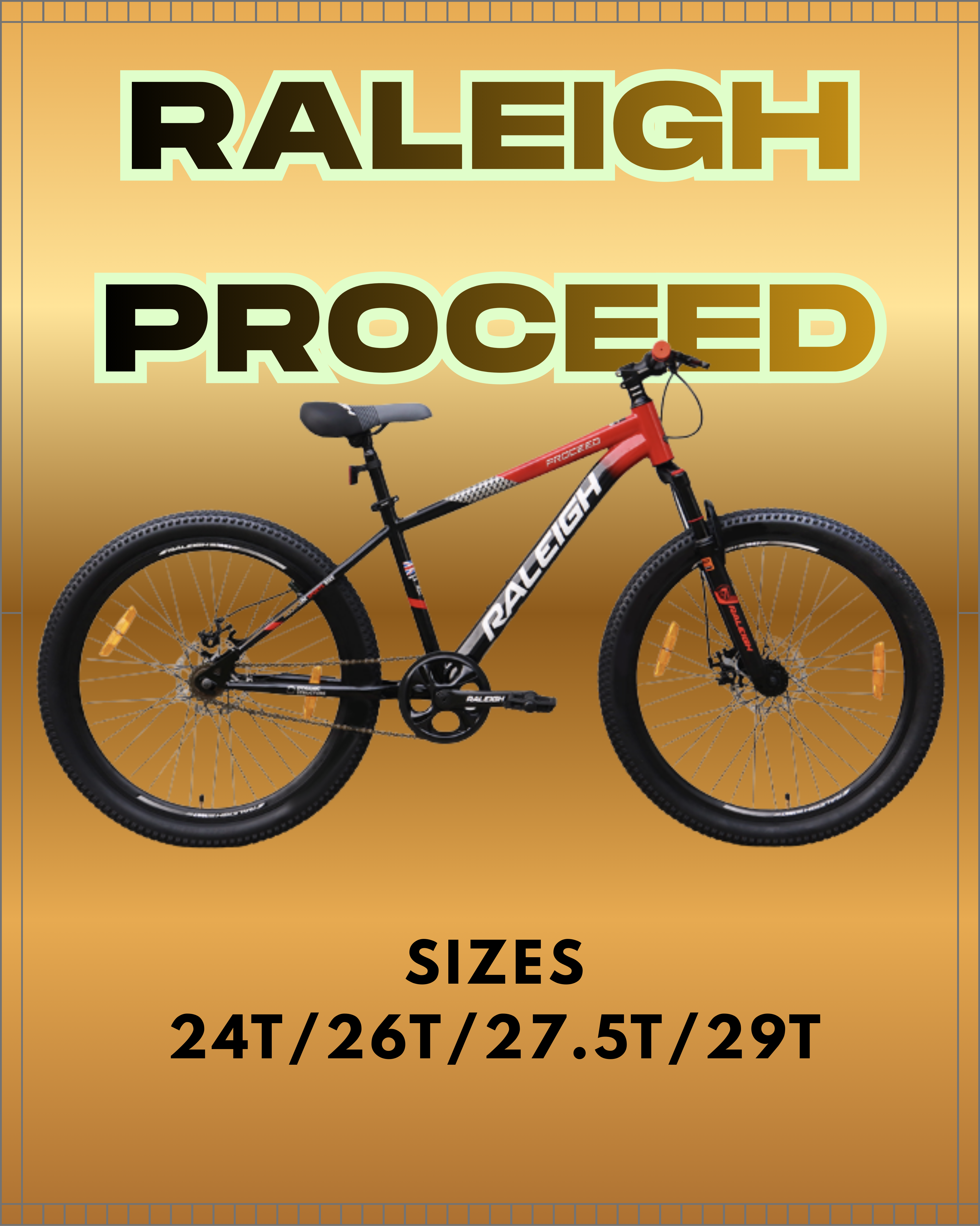 Manoj Cycles now offers the Raleigh Proceed in both Single Speed (S/S) and Multi Speed (M/S) options — perfect for riders who want simplicity or a geared ride for varied terrain. The Proceed stands out with its Hi-Ten steel frame with internal cable routing and a Raleigh suspension fork, giving you a comfortable and stable ride on city streets and light trails. The Single Speed variant delivers low-maintenance pedaling with a smooth drivetrain and reliable mechanical disc brakes, while the Multi Speed version features a 3×7 Shimano gearing system for easier climbs and versatile riding. Both models come with double wall alloy rims, mechanical disc brakes, and durable tyres — combining performance with everyday usability. Buy the Raleigh Proceed in Jaipur at Manoj Cycles and enjoy genuine products, expert guidance, and trusted after-sales support from one of Rajasthan’s premier bicycle stores.