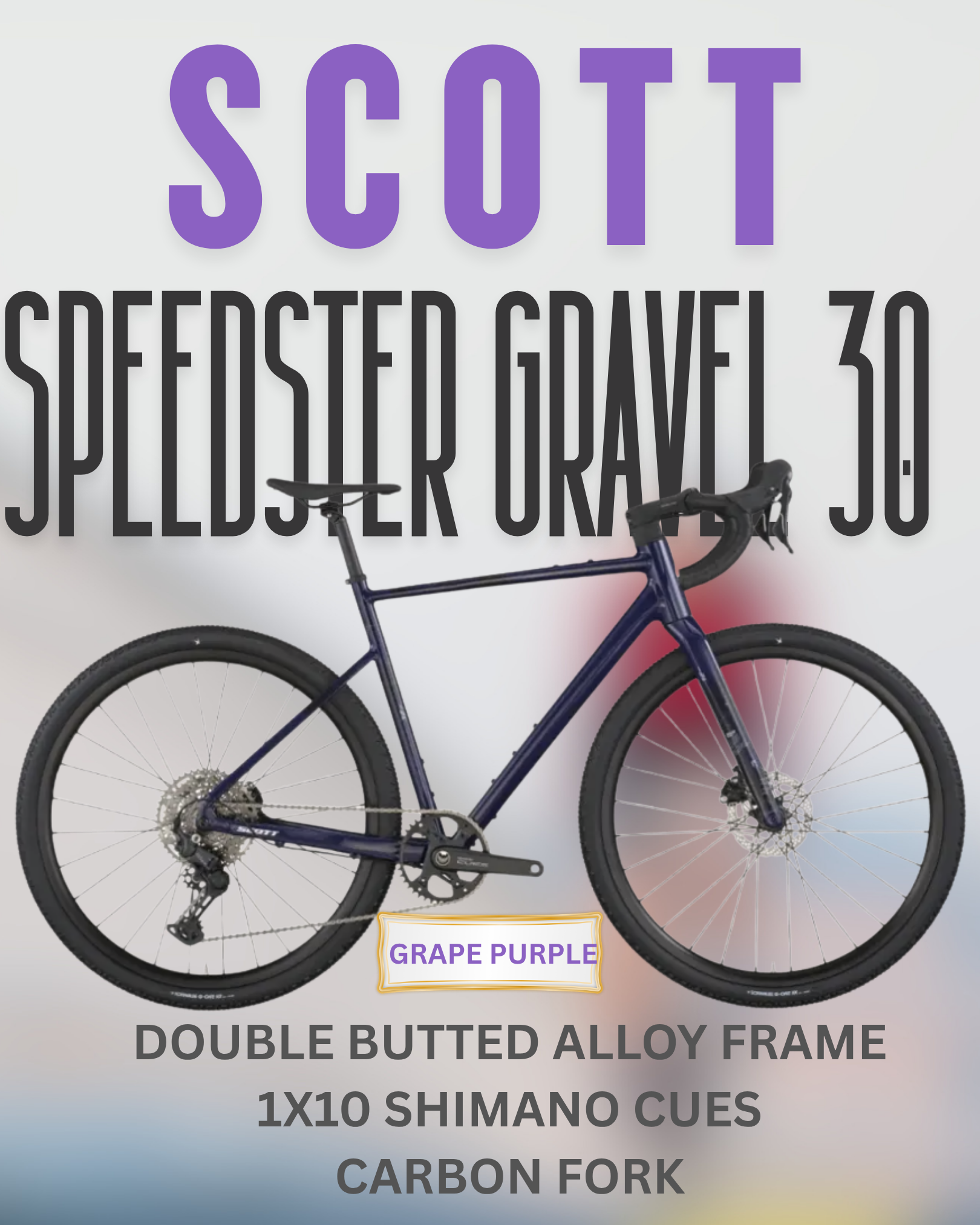 The Speedster Gravel 30 features a double-butted 6061 alloy frame paired with a lightweight HMF carbon fork, offering excellent durability and vibration absorption for all-day comfort. Its gravel-specific geometry ensures a stable and confident ride on both highways and off-road trails.