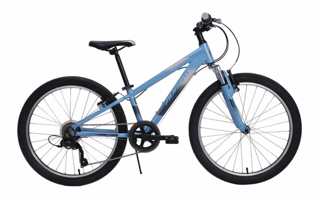 Frame ADT 6061 Lightweight Alloy Fork HL Zoom Suspension 50mm travel Shifters Micro Shift Twist shifter for little hands 7speed Crankset 3-Piece with 38T chain ring & double chain guard Brakes Alloy V-brake Brake Levers Alloy adjustable lever with short reach design Wheelset / Rims Lightweight Alloy 28H Hubs Front: Alloy 28H QR, Rear: Steel 28H Nutted Spokes Stainless Steel Cassette 14-28T 7-Speed Freewheel Handlebar Steel MTB 30mm rise Handlebar Stem Zoom Alloy ahead, 45mm, w/alloy cap Headset 1 1/8th Ahead Internal semi cartridge Grips MTB Soft Kraton comfort Pedals Resin youth platform with ball bearings Tyres MTB fast rolling 24 x 2.35 Saddle Zero Junior Sport Seat Post Alloy 27.2mm x 300mm, alloy QR Bottom Bracket MTB Std BB Chain KMC HP-6L EXTRAS Kickstand Rear Derailleur Micro Shift RD-M21L country of origin Cambodia