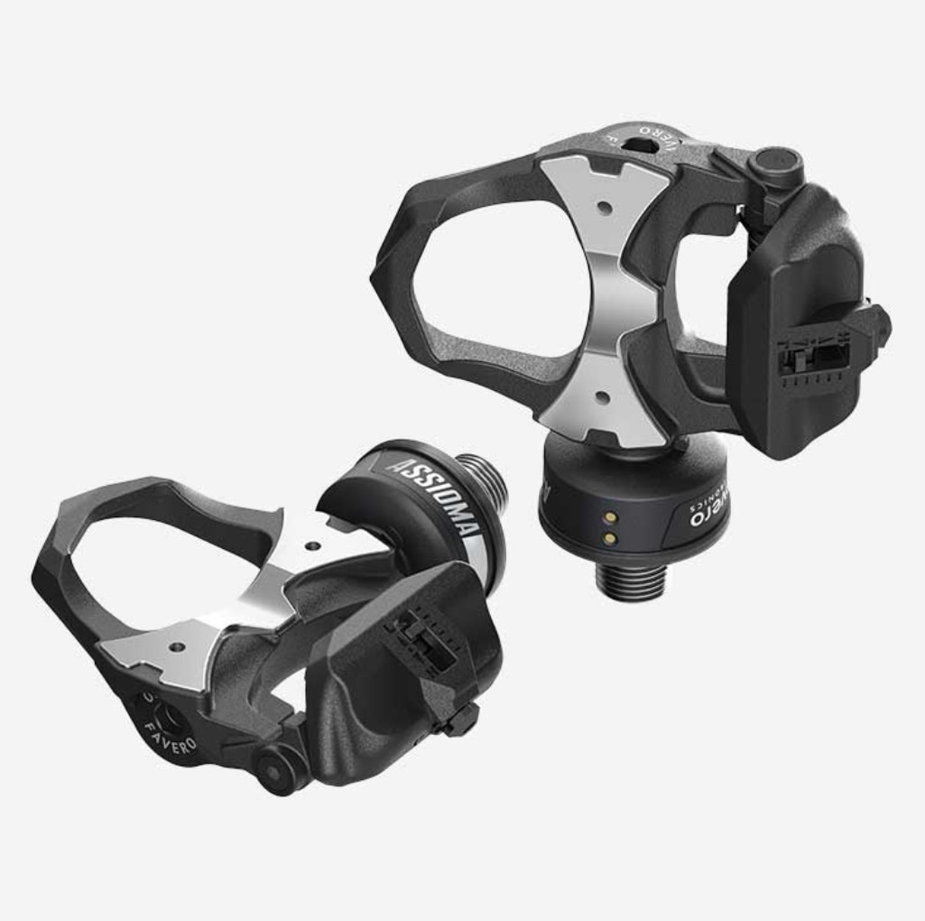 Overview Easy to install Install and move your Assioma DUO pedals from one bike to another just like your normal pedals. You can do it easily and without extra tools or the need for a mechanic. IAV Cycling Dynamics Our bike power meter pedals provide advanced metrics called IAV Cycling Dynamics: IAV Power Phase and IAV Rider Position. These metrics, combined with the classic power data, permit you to analyze your pedaling technique in detail and learn about how your position on the bike influences your performance. IAV Power and gyroscope Unlike others, when calculating power Assioma takes into account our inevitably irregular pedaling (e.g. uphill, sprints) or the use of oval chainrings. This is because Assioma can detect the actual instantaneous angular velocity during the whole pedal stroke, thus providing ±1% accuracy in any conditions. Bluetooth and ANT+ Assioma features both Bluetooth and ANT+ connectivity for a seamless compatibility with bike computers and smartphones (both Android and iOS). Real dual-sided power data The Favero Assioma DUO power meter pedals measure power individually on both legs. This makes possible to observe with accuracy not only Total Power, but also L/R Balance. Accuracy and consistency Assioma guarantees accurate and consistent data in all conditions on the road, and at any temperature ranging from -10°C and 60°C, thanks also to the ATC (Automatic Temperature Compensation). Waterproof, resistant and light The power sensors are protected by a bi-component resin block, extremely resistant to shocks and completely waterproof. Rechargeable and green The Assioma power meter pedals use rechargeable batteries with a single charge ensuring at least 50 hours of use. Do you want to learn more about the advantages of our rechargeable batteries? Read the article! Tested and guaranteed Favero Electronics produces every bike power meter in-house and tests each of them thoroughly to fully satisfy the standard required by current regulations. Tech Specs Power sensors on both pedals Dual-sided power measurement Cadence sensor: included, inbuilt Gyroscope: included, inbuilt Power calculation system: IAV (Instantaneous Angular Velocity-based) IAV Cycling Dynamics: yes Oval-chainring compatible: yes Total weight per pedal: 151,5 g (battery included) Battery type: rechargeable lithium battery Battery life: at least 50 hours Radio communication: Bluetooth v4.0, ANT+ PWR profile (CT + PO) Accuracy power measurement: ± 1% Temperature compensation: -10°C / +60°C Waterproofness rating: IP67 Q-factor: +54 mm Compatible cleats: Original LOOK® Kéo Cleats and Favero cleats (red and black) Bike type: road Made in Italy Warranty: 2 years Package Content Left pedal with power sensor Right pedal with power sensor Battery charger including plugs (EU, US, UK, AU) 2 two-meter long micro-USB/USB cables with 2 magnetic connectors 2 red cleats 6° float (LOOK® Kéo compatible) Hex key and 4 washers for the installation User manual