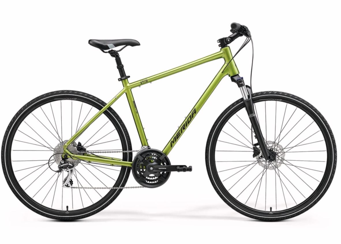 Frame- CROSSWAY TFS III material: aluminium 700x50C max. wheelsize 135x9mm axle standard BSA bottom bracket standard Fork- SR Suntour NEX HLO Coil 63mm suspension travel lockout 700x50C max. wheelsize Bottom Bracket- FSA TH-7420ST-W, CARTRIDGE BEARING Chain- SUNRACE M84 Crank- Shimano TY301 48-38-28 teeth 170 mm-XXS/SM, 175 mm-ML/XXL Shift Levers- Micro Shift TS39-L / Micro Shift TS39-8R Cassette- SUNRACE CSM668 11-32 teeth 8 speed Front Derailleur- Shimano FD-TY710 Rear Derailleur- Shimano RD-M360 Grips/Bartape- MERIDA EC Handlebar- MERIDA CC material: aluminium 660mm width 25mm rise Stem- MERIDA TK material: aluminium 25.4mm diameter adjustable 100 mm Saddle- MERIDA CROSS SPORT Seatpost- MERIDA TK 27.2mm diameter 13mm setback 40mm seatpost suspension travel Front Brake- Power DS100 2 piston hydraulic disc brake Rear Brake- Power DS100 2 piston hydraulic disc brake Front Wheel- MERIDA CC,Shimano TX505 100x9mm width front hub 32 spoke holes Centerlock Rear Wheel- MERIDA CC, Shimano TX505 135x9mm width rear hub 32 spoke holes Centerlock Tire- MERIDA K1171 700x40C wire Pedal- VP VPE-891