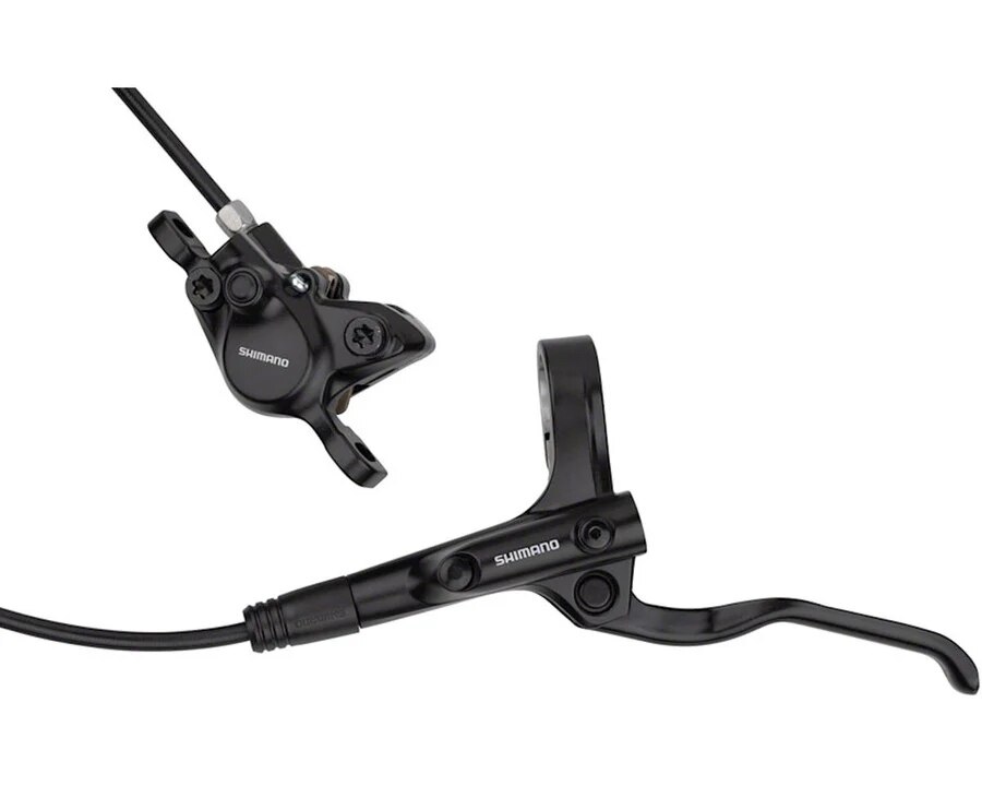 THE BR-MT200 DISC BRAKE SET BY SHIMANO - VERSATILE DESIGN The Shimano BR-MT200 disc brake set is a low-priced brake system without groupset integration. With its versatile design, it is suitable for numerous types of bikes in the MTB or even touring and urban areas. The performance of the 2-piston calipers is adapted to beginners and runs reliably without much noise. Thanks to One Way Bleeding technology, bleeding is no problem. The BL-MT200 3-finger brake levers have a grip width that can be comfortably grasped by small hands and adjusted with a tool. SPECIFICATIONS: Application: Cross Country, City & Touring, City Type: hydraulic, 2 pistons Actuation: mineral oil Hose: SM-BH59-JK-SS Line Length (Front/Rear): 1000 mm/1700 mm TECHNICAL INFORMATION - CALLIPER: Calliper Mount: post mount Pistons: 2 Pads: B01S resin Design: 2-piece Calliper Material: aluminium Hose Connection: straight TECHNICAL INFORMATION - LEVER: Lever Length: 3-finger Adjustment Options: reach adjust (with tools) Installation: clamp (closed) Design: right (side-specific), left (side-specific) Brake Lever Material: Steel Brake Lever Housing Material: aluminium Hose Connection: straight FEATURES: - versatile design suitable for a wide range of bike types - braking power adapted to MTB beginners - small hands can easily reach lever - reliable, quieter braking performance - easy, fast and clean installation - reduced rattling noises of the brake hoses - resin pistons - IS mount with adapter possible - recommended brake rotor: SM-RT10, SM-RT26 - painted brake calliper, steel bolts (5 mm) - funnel bleeding - lever and body painted, steel clamp bolt - Shimano logo TECHNOLOGY: One-Way-Bleeding One-Way Bleeding is designed to quickly and easily prevent air from entering the hydraulic system. Shimano has optimised the brake fluid flow path throughout the system to prevent air bubbles from being trapped in the system. One way oil routing plus a funnel tool with mineral oil provides an easy and clean bleeding system. MANUFACTURER PART NUMBER: E-MT200KLFPRA100 + E-MT200KRRXRA170 CONTENTS: - 2 x Shimano BR-MT200 + BL-MT200 disc brakes, front & rear (choose both variants separately for complete set) - 1 x Shimano SM-BH59-JK-SS brake hose, 1000 mm (front) - 1 x Shimano SM-BH59-JK-SS brake hose, 1700 mm (rear) - 2 pair of Shimano B01S brake pads - 2 x inserts - 2 x olives - 4 x calliper bolts - 2 x snap ring - ready to mount (filled & bled)