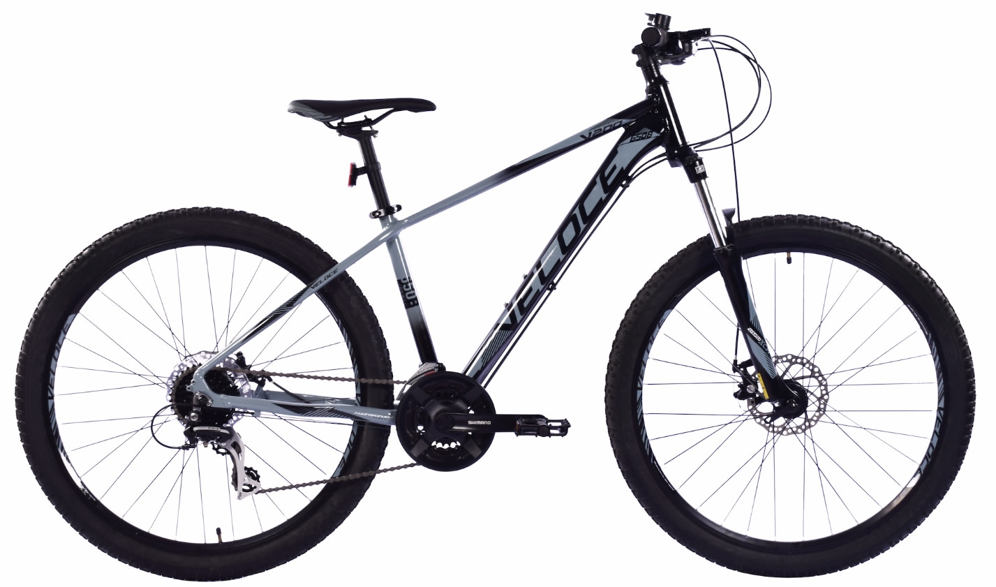 Color Black Grey Speed 24 SPD mechanical Disc Frame 650b” x16”,18” Alloy MTB Frame,With Disc Brake Type Fork 650B Suspension Fork, Travel 120mm Headset Head Set, Steel Full Bearing Ahead Type ,With Veloce Logo B.B. Set Cartridge BB 122.mm Seat Bolt/Pin/Clamp 31.8mm, Alloy with QR Handle Bar AlloySemi raise bar,Length-700mm, Bar bore: 31.8mm, Raise-12.5mm ,Back Sweep:5 Degree Stem Alloy, Ahead Type,D:31.8×28.6,Ex:60mml,6 Deg Raise Grips PVC MTB Type-125/125mm(Lock End Type) Brake Levers Full Alloy 3 Finger Front Brake Mechanical Disc with 160mm disc Rear Brake Mechanical Disc with 160mm disc Shifter Right SL-M310, RIGHT 8-SPEED Shifter Left SL-M310, LEFT 3-SPEED Front Derailleur FD-TY500-TS6, TOURNEY,TOP-SWING, DUAL-PULL Rear Derailleur RD-M360-L, ACERA Chain Meter-114 Link( 8 Sped) Freewheel CASSETTE SPROCKET, CS-HG200-8 Chainset FC-TY301,FOR REAR 6/7/8-SPEED Paddle 9/16’’ Alloy Tyres Front MTB Tire 650Bx2.10 Tyres Rear MTB Tire 650Bx2.10 Tubes/Valve 650B AV Tube Rim Tape 650B Rubber Rims 650B Double wall 32 Hole, AV Hole Front Hub 32H OLD:100MM AXLE:108MM Rear Hub 32H 8/9/10-SPEED, OLD:135MM, AXLE:146MM Saddle MTB Saddle with Bk Rail Seat Post 27.2mmx300mm Alloy Micro Adjust